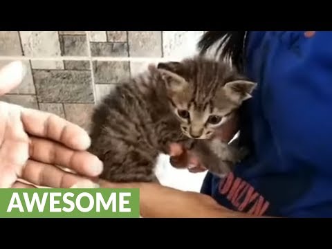 Tiny kitten rescued from drainage pipe