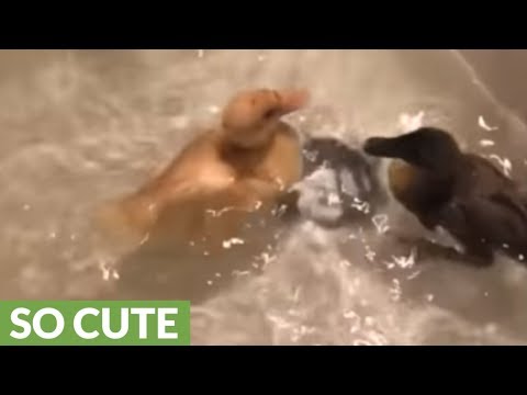 These ducklings are 2 weeks old and going for their first swim. It's safe to say they like it! Source & embed code: https://rumble.com/v70hxt-ducklings-first-swim...-just-so-happens-to-be-in-our-kitchen-sink.html. For licensing, please email licensing@rumble.com.