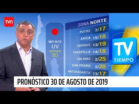 Conoce el pronóstico completo para todo Chile en TV Tiempo. #TVTiempoTVN #TVNChile #Chile ¿Chileno en el extranjero? Conéctate en https://www.tvnplay.com SUSCRÍBETE http://www.youtube.com/subscription_center?add_user=TVN Facebook https://www.facebook.com/tvn.cl Twitter https://twitter.com/tvn Instagram https://instagram.com/tvn
