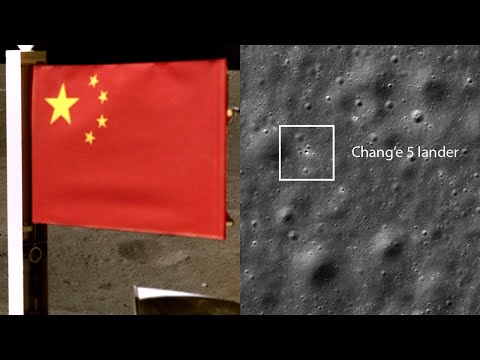 The Chang'e 5 module that remained on the moon has 'unfurled' a small Chinese national flag. Also, NASA's Lunar Reconnaissance orbiter has spoted the lander on the moon's surface. -- Watch China's Chang'e 5 spacecraft land on the moon in this amazing video: https://www.space.com/china-chang-e-5-moon-landing-lunar-sample-video Credit: Space.com | footage courtesy: China Central Television / CNSA / CLEP / LRO Image: NASA/GSFC/Arizona State University | produced & edited by Steve Spaleta (http://www.twitter.com/stevespaleta)
